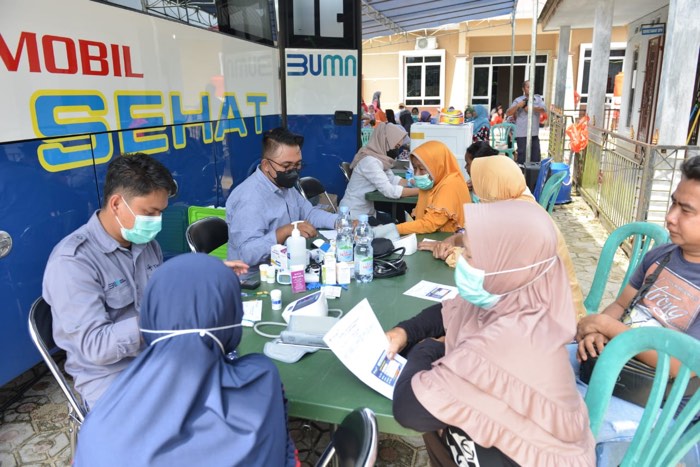 Warga mendapat pelayanan fasilitas kesehatan gratis di Mobil Sehat PT Timah Tbk yang menyambangi Desa Bencah dan Desa Serdang, Kabupaten Bangka Selatan, Provinsi Kepulauan Bangka Belitung, Jumat (20/5/2022). (Foto: Istimewa)