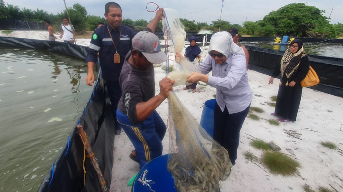 PT Timah Tbk melalui program Pendanaan Usaha Mikro Kecil (PUMK) dan Program Pemberdayaan Masyarakat membantu anggota koperasi untuk membudiyakan udang vaname di desa tersebut.