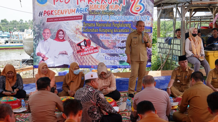 BABELHITS.COM, PANGKALPINANG – Wali Kota Pangkalpinang Maulan Aklil (Molen) didampingi ketua TP PKK Pangkalpinang Monica Haprinda menikmati santapan ikan bakar dan lempah kuning sekaligus menyerap aspirasi masyarakat di Rusunawa Kelurahan Ketapang, Kecamatan Pangkalbalam, Selasa (27/9/2022).