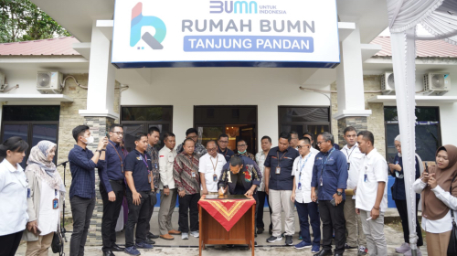 Rumah BUMN Belitung yang menjadi wadah untuk memasarkan produk UMKM di Pulau Belitung telah diresmikan oleh Staf Khusus Menteri Badan Usaha Milik Negara (BUMN) bidang komunikasi pulik, Arya Sinulingga, Kamis (15/12/2022). Peresmian Rumah BUMN ditandai penandatangan prasasti Rumah BUMN Belitung yang disaksikan perwakilan BUMN, masyarakat, dan para pelaku UMKM di Pulau Belitung. (Foto: Istimewa)