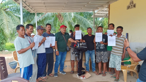 PT Timah Tbk menyerahkan bantuan 10 unit mesin tempel 9,8 PK kepada Forum Masyarakat Pesisir Bakit (FMPB) Desa Bakit, Kecamatan Parittiga, Kabupaten Bangka Barat, Jumat (16/12/2022). Sekretaris FMPB Joni Fadlan mengatakan mesin tempel ini akan diberikan kepada masyarakat nelayan yang betul-betul membutuhkan. (Foto: Istimewa)