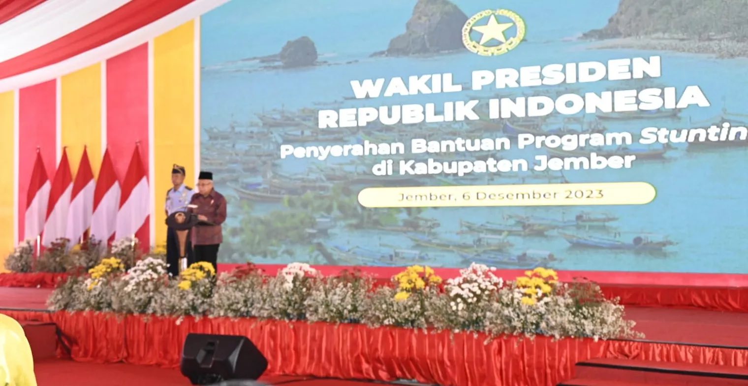 “Pertama, pastikan bantuan stunting diberikan tepat sasaran dan tidak tumpang tindih dengan mekanisme pemberian bantuan yang sudah diberikan pemerintah,” tegas Wakil Presiden (Wapres) K.H. Ma’ruf Amin pada acara Penyerahan Bantuan Program Stunting di Kabupaten Jember yang dilaksanakan di PT. Semen Imasco Asiatic, Kelurahan Puger Wetan, Kecamatan Puger, Kabupaten Jember, Jawa Timur, Rabu (6/12/2023).