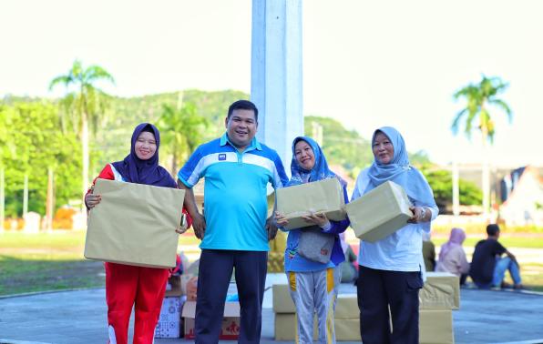 “Senam bersama ini kami rangkaikan dengan donor darah dan juga sembako murah kepada pegawai Pemkab Bangka,” tuturnya