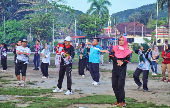 Dalam arahanya M. Haris mengatakan, kegiatan senam ini dirangkaikan dengan donor darah dan sembako murah.