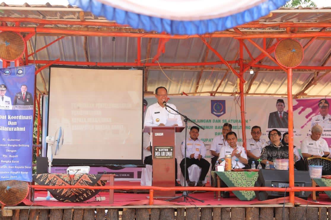 Babelhits.com, Mentok – Penjabat (Pj) Gubernur Kepulauan Bangka Belitung (Babel) Sugito melakukan kunjungan kerja ke Kabupaten Bangka Barat (Babar) dalam rangka melaksanakan Rapat Koordinasi dan bersilaturahmi dengan Penjabat Sementara (Pjs) Bupati Babar bersama jajarannya di Desa Air Limau, Kabupaten Bangka Barat, Rabu (16/10/24).