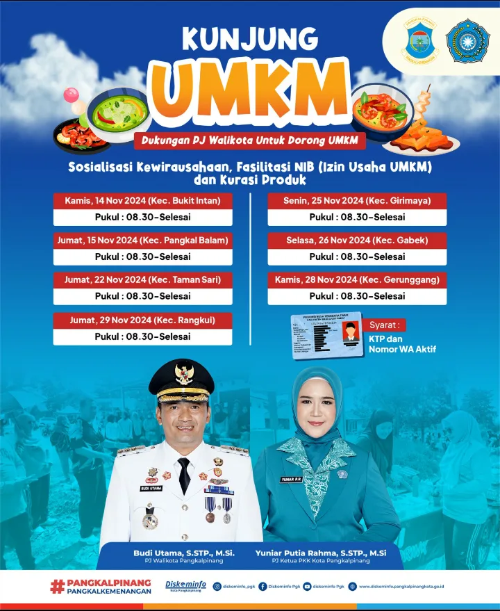 Kunjung UMKM, atau Dukungan Pj Wali Kota untuk Dorong UMKM ini kemudian terlaksana dengan sinergi yang kuat bersama Tim Penggerak Penggerak Pemberdayaan Kesejahteraan Keluarga (TP PKK) sebagai mitra, sekaligus “eksekutor”, di bawah kepemimpinan Pj Ketua TP PKK Pangkalpinang, Yuniar Putia Rahma.
