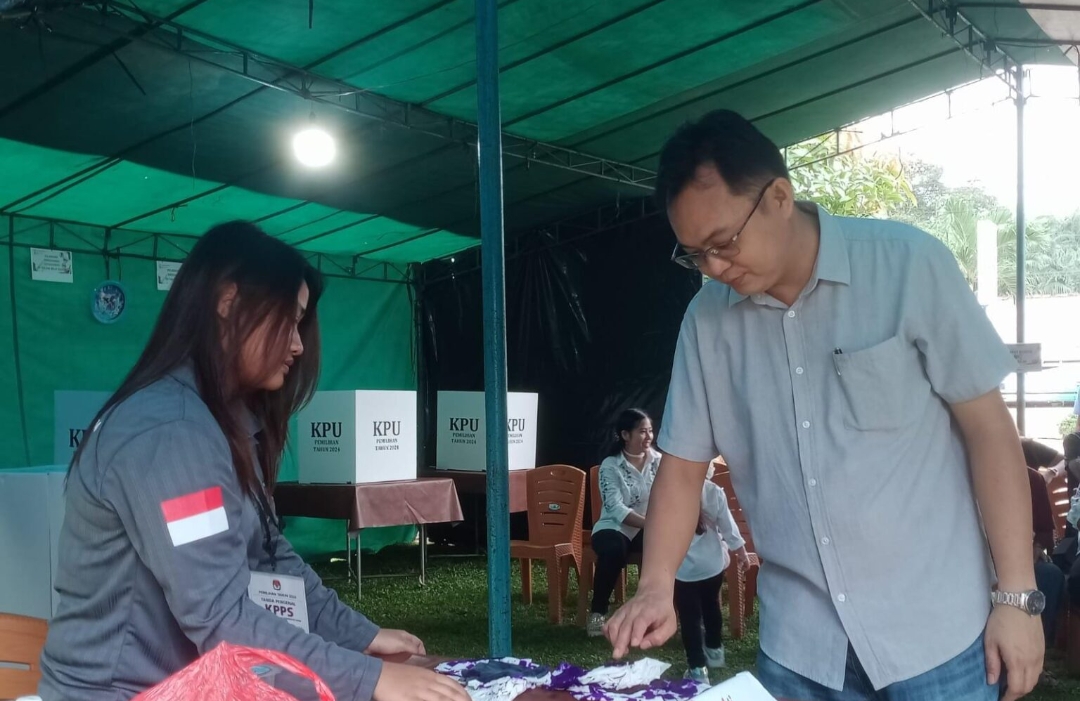 Markus Nyoblos di TPS 04 Pelangas, Optimis Masyarakat Memberi Suara ke 02