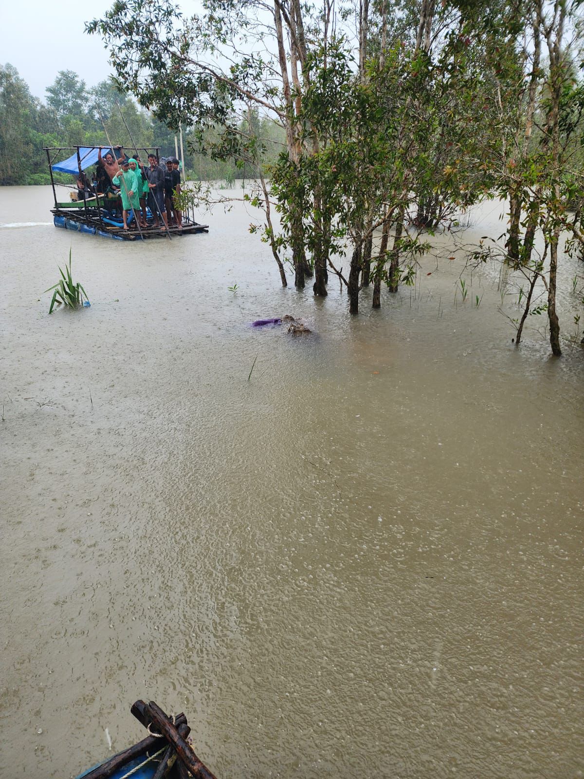 Pencarian dilakukan dengan menyusuri sungai menggunakan perahu karet.