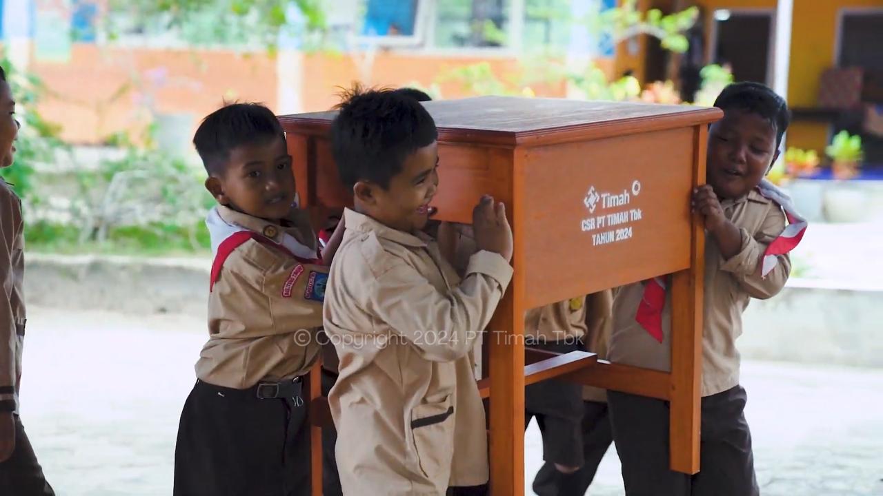 Akhir tahun lalu, anggota Holding Industri Pertambangan MIND ID ini menyerahkan bantuan meja dan kursi kepada SDN 21 Gantung, Kabupaten Belitung Timur.