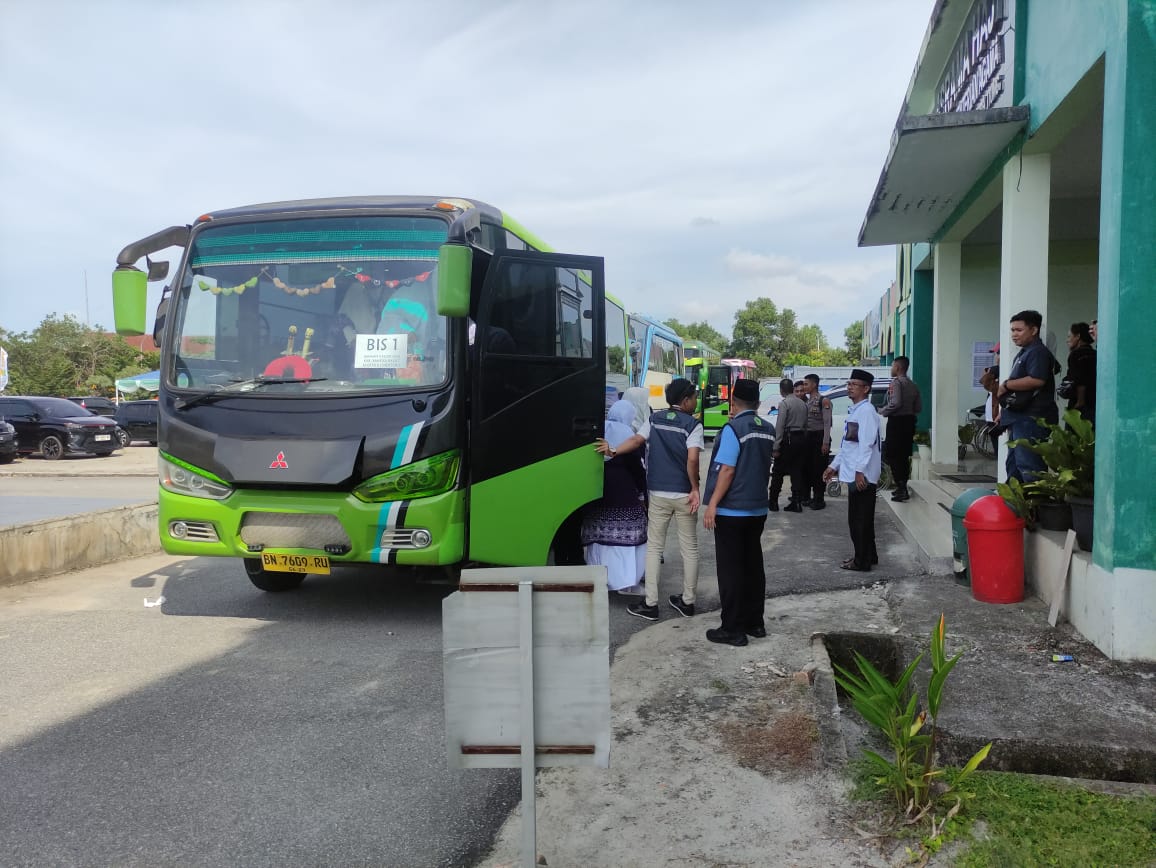 Setelah dilepas forkopimda di titik kumpul Masjid Sirathal Mustaqim, Kecamatan Kelapa, calon jemaah haji sudah berada di asrama haji Bangka Belitung, Kamis (8/5/2025) siang.