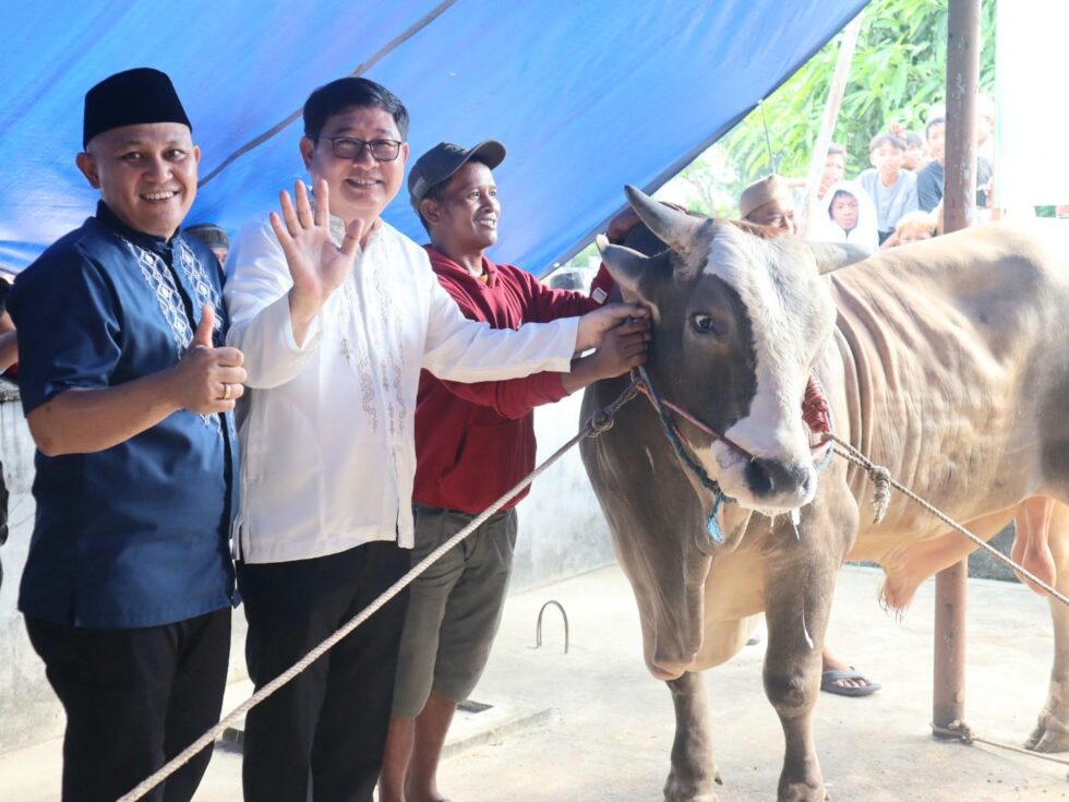 Babelhits.com, Belitung Timur – Sapi kurban seberat 822 kilogram dari Presiden RI, Prabowo Subianto, diserahkan oleh Bupati Belitung Timur (Beltim) Kamarudin Muten didampingi Wakil Bupati Beltim Khairil Anwar kepada Dewan Kemakmuran Masjid (DKM) Masjid Assalam I Desa Baru Kecamatan Manggar bersama pengurus masjid dan panitia pelaksana kurban.