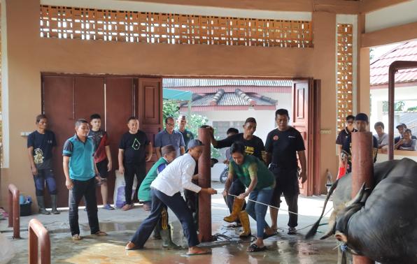 Pemotongan dilakukan di halaman belakang Rumah Dinas Bupati Bangka, pada Minggu (08/6/2024) pagi.