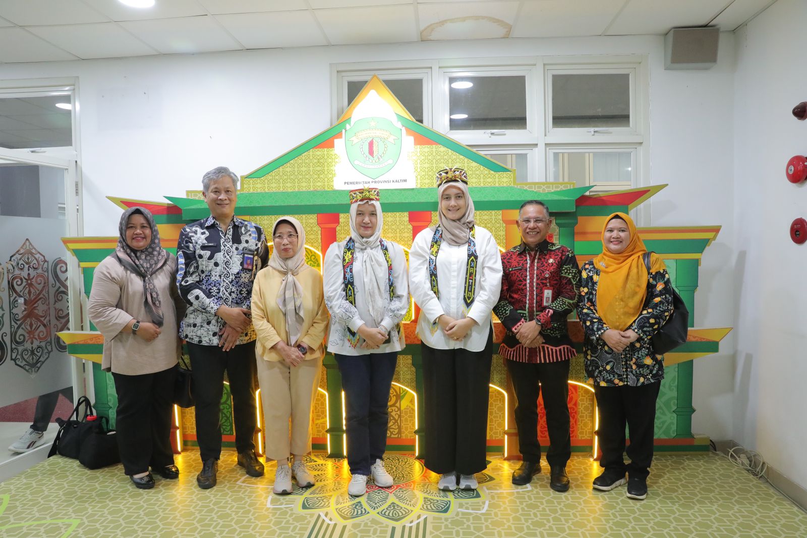 Kedatangan Ketua TP PKK Babel disambut oleh Plt Kepala Dinas Perhubungan Ilhamsyah serta jajarannya dengan memberikan topi yang biasa disebut Tapung Sekedug dan syal yang terbuat dari manik-manik motif khas Kalimantan.