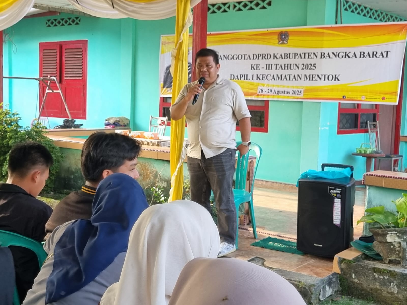 MENTOK – Serap aspirasi masyarakat atau reses digelar oleh Anggota DPRD Kabupaten Bangka Barat (Babar), Deddi Wijaya. Reses Masa Persidangan ke III ini digelar di Daerah Pemilihan (Dapil) 1 Kecamatan Mentok pada Kamis (28/8/2025) sore.
