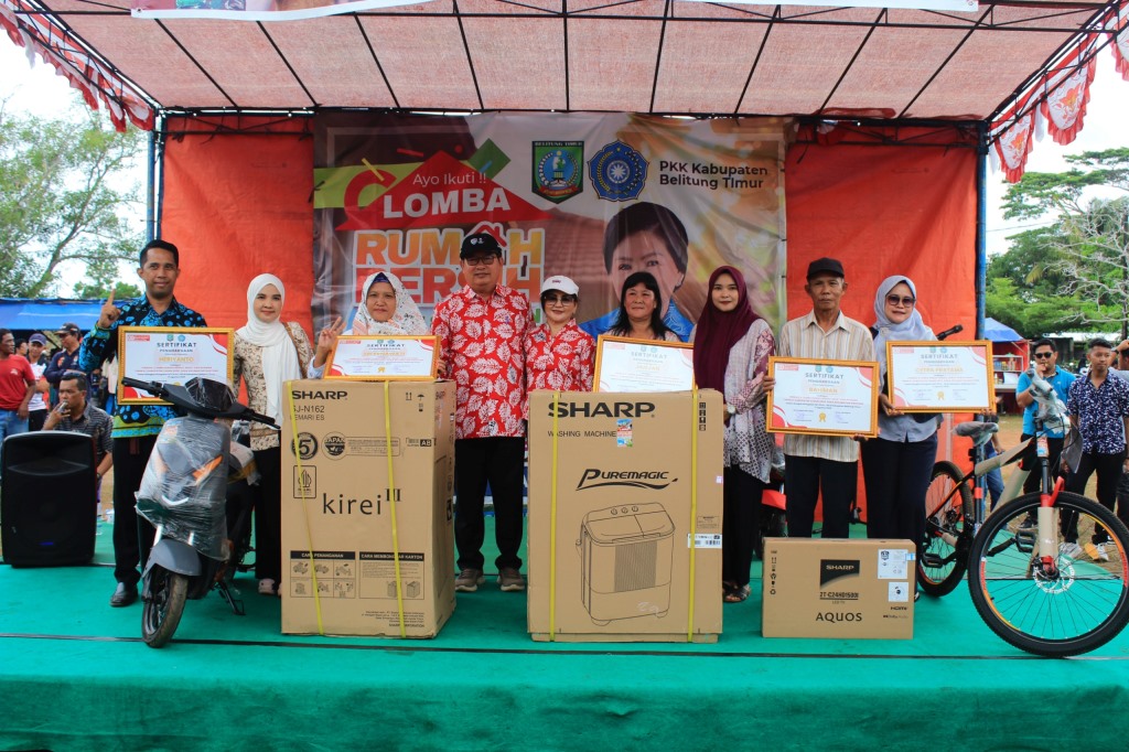 Babelhits.com, Belitung Timur – Ketua Tim Penggerak PKK Kabupaten Belitung Timur (Beltim), Vivi Yuliana mengumumkan sekaligus menyerahkan hadiah kepada pemenang Lomba Rumah Sehat Bersih dan Nyaman Kabupaten Belitung Timur Tahun 2025, Minggu (31/8/2025) di halaman MPB Gantung.